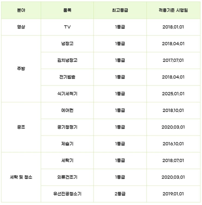 | 대상 품목 | 11개 가전제품 (1등급) |