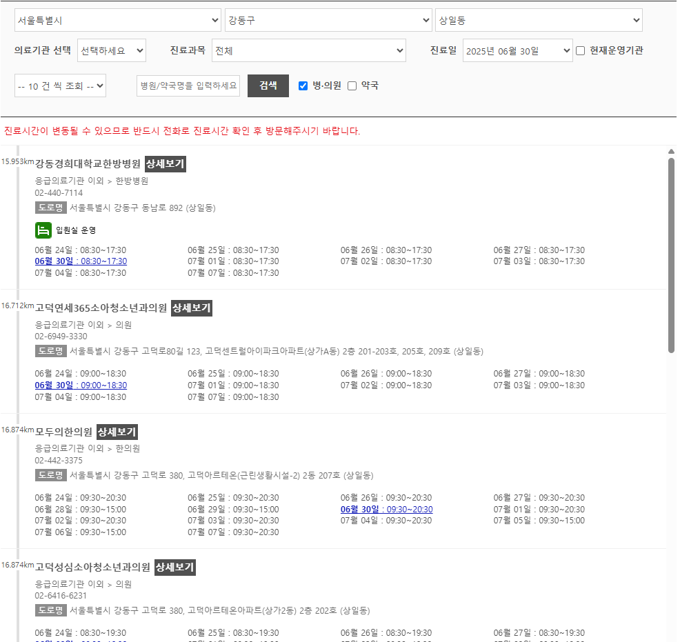 네이버지도, 카카오맵, 구글맵 등에서 ‘강동구 24시 약국’ 검색도 가능하지만, 주의할 점이 있습니다.