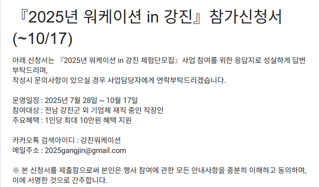 - ❌ 중복 신청 불가: ‘강진 누구나 반값여행’, ‘촌캉스 푸소’, ‘강진에서 1주일 살기’와 중복 불가