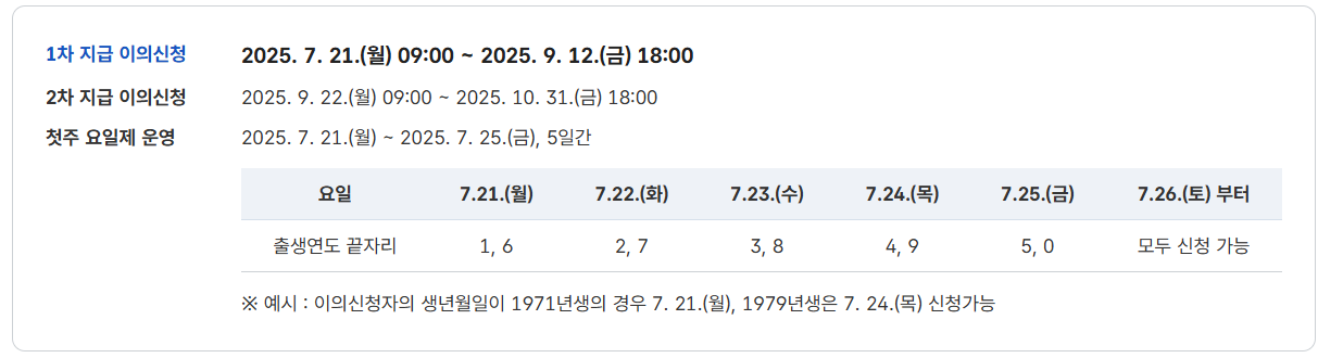 - 지급 기준: 2024년 6월 30일 기준 대한민국 국민
