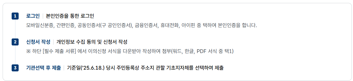 - ✔ 추가 증빙서류 준비 후 2차 신청 가능
