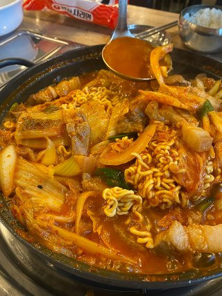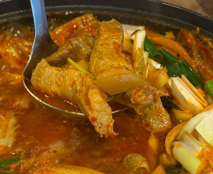 100% 국내산 생 돼지고기와 사장님이 직접 담근 국내산 김치를 사용하며, 주문 즉시 조리하여 신선한 풍미를 살리는 것이 비결이에요. 잡내 없이 깔끔하고 칼칼하면서도 개운한 국물 맛이 특징이랍니다.