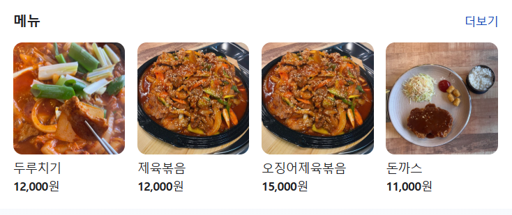 | 제육볶음 | 12,000원 | 두루치기와는 또 다른 매력의 볶음 메뉴 |