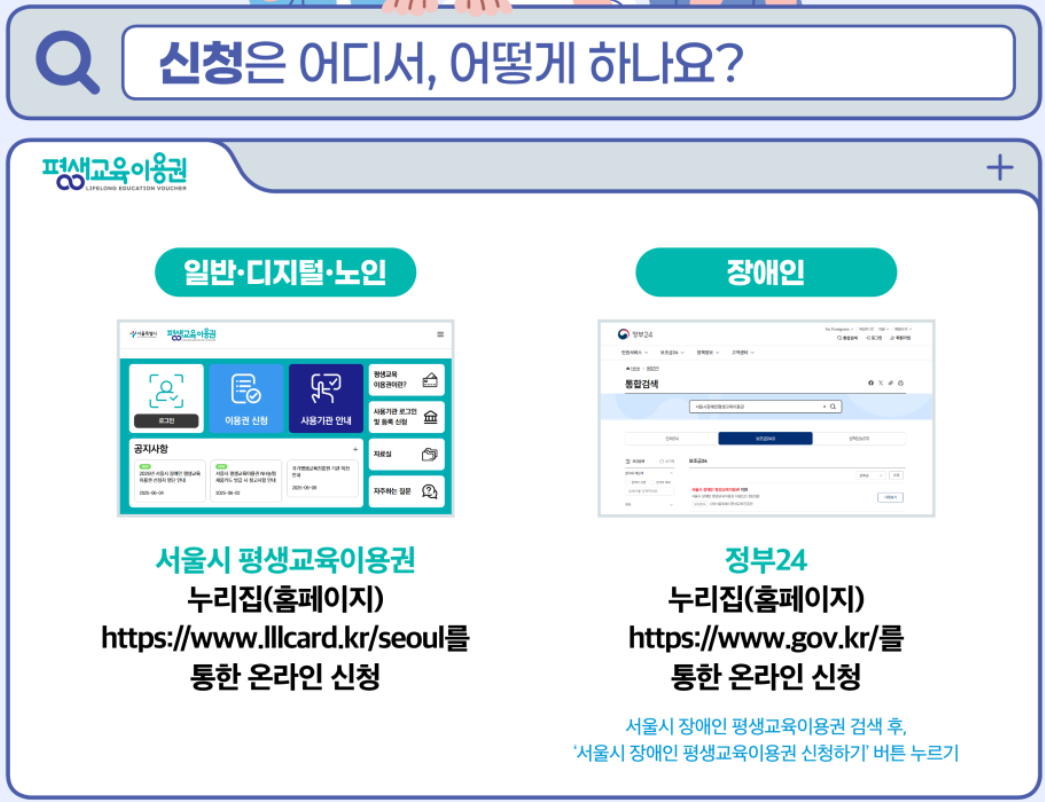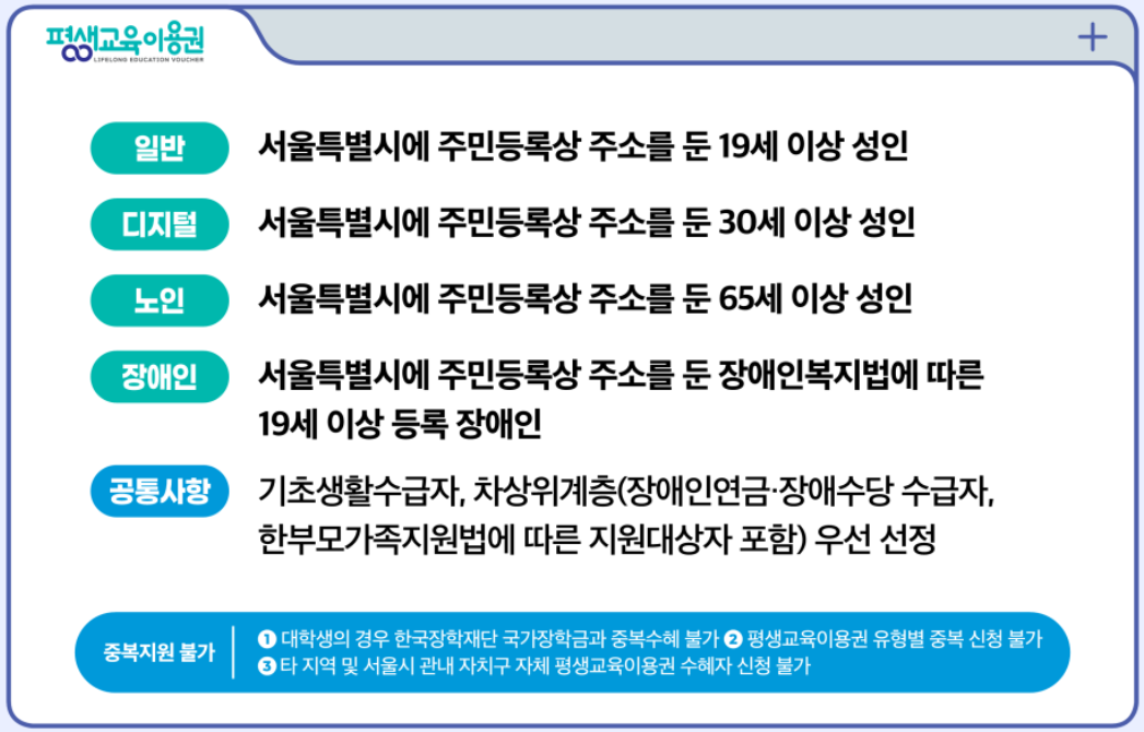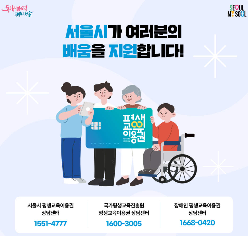 - 신청: 서울시 평생교육이용권 홈페이지