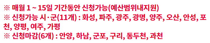 - 신청 기간: 매월 1일~15일 (예산 소진 시 조기 마감)