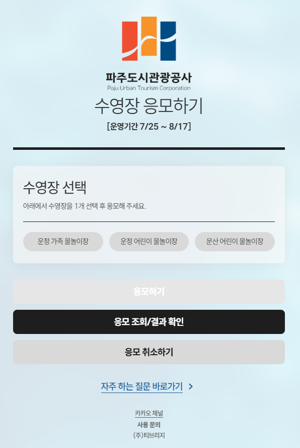 🔗 파주도시관광공사 수영장 응모 시스템 바로가기