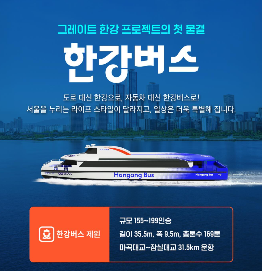 한강버스는 서울시가 기획한 친환경 수상 대중교통입니다.