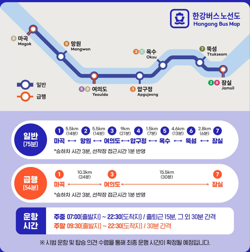 | 운항구간 | 여의도 → 뚝섬 → 잠실 (편도) |