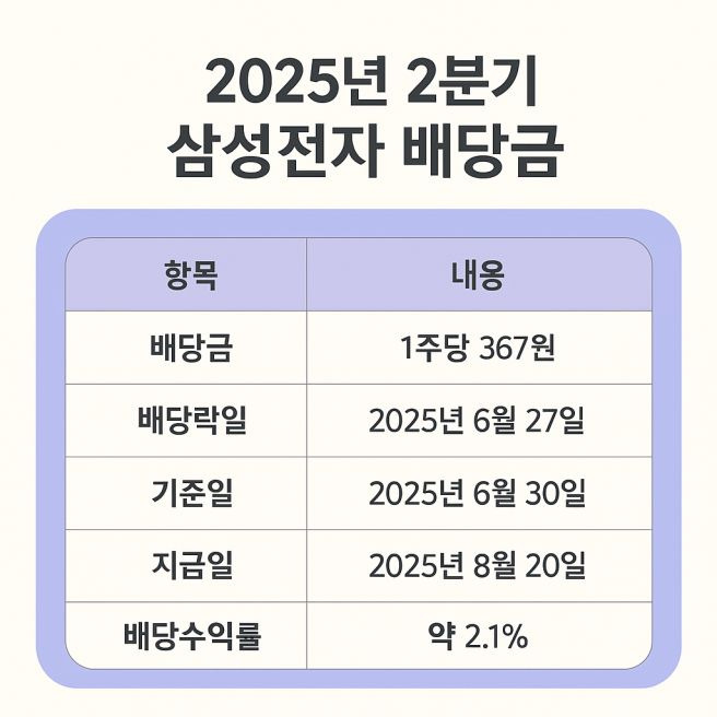 📋 2025년 삼성전자 2분기 배당 핵심 정보