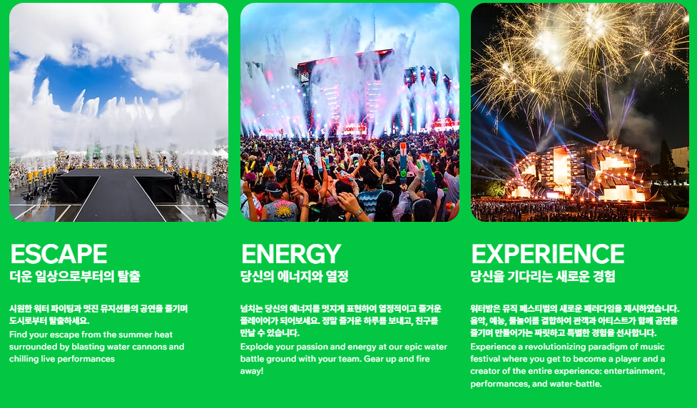 워터밤 서울은 단순한 콘서트를 넘어 한여름 도심 속 축제입니다.
