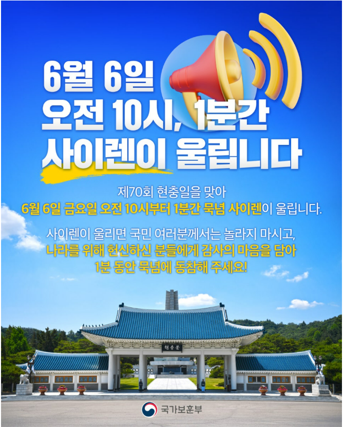 묵념, 조기 게양, 직접 방문 등 일상 속 작은 실천을 통해 국가를 위해 희생한 분들께 마음을 전하는 하루가 되길 바랍니다.
